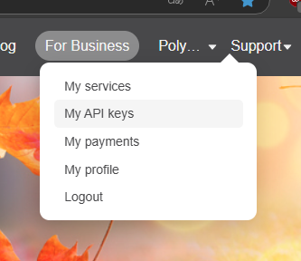 再度ログインして、ユーザー名が表示されている部分をクリックしたら「My API keys」を選択します。