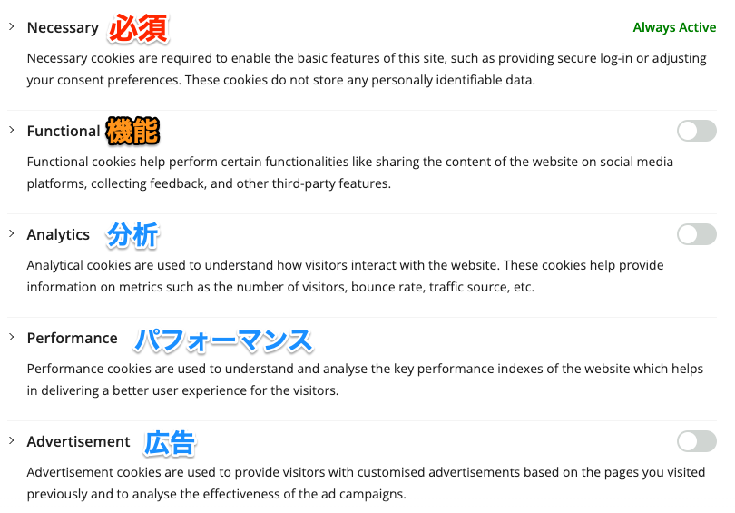パフォーマンスクッキーは、ウェブサイトの主要なパフォーマンス指標を理解して分析するために使用され、訪問者に優れたユーザーエクスペリエンスを提供するのに役立ちます。