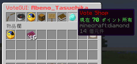 投票プラグインを入れてから使い道がなく今まで放置していましたが、今回から投票ポイントを消費してアイテムを交換出来るようにしました。